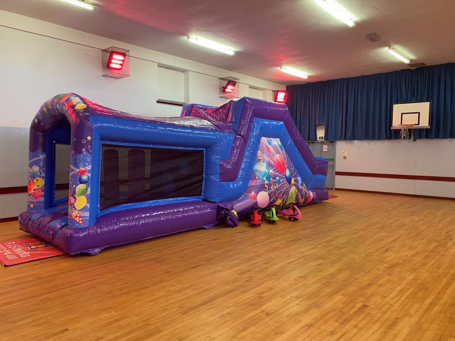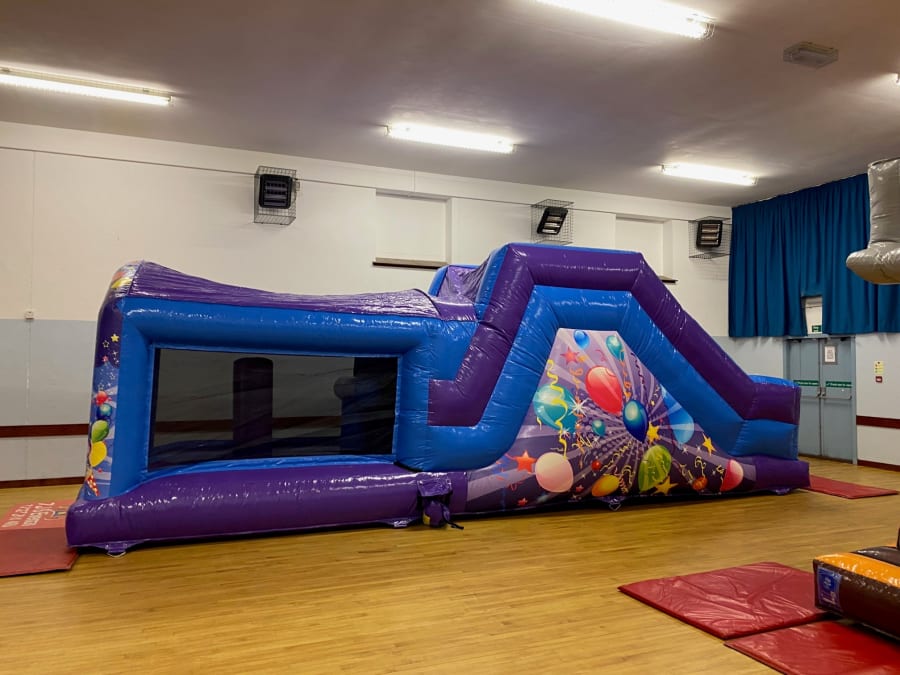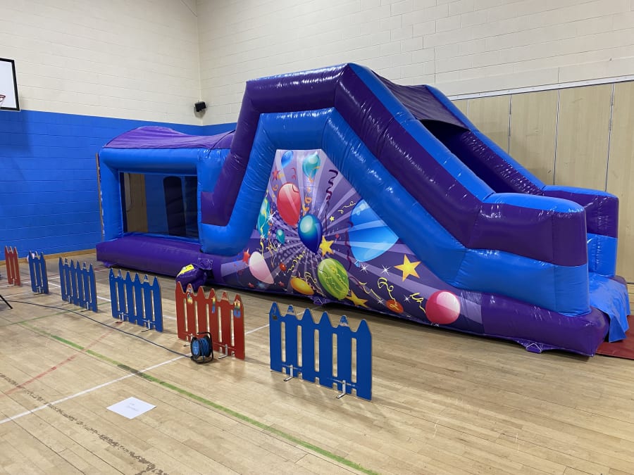 🌈 Jump through the Bish Bash, conquer the towering walls, and slide down the exhilarating slide - all in one inflatable course! 🌈