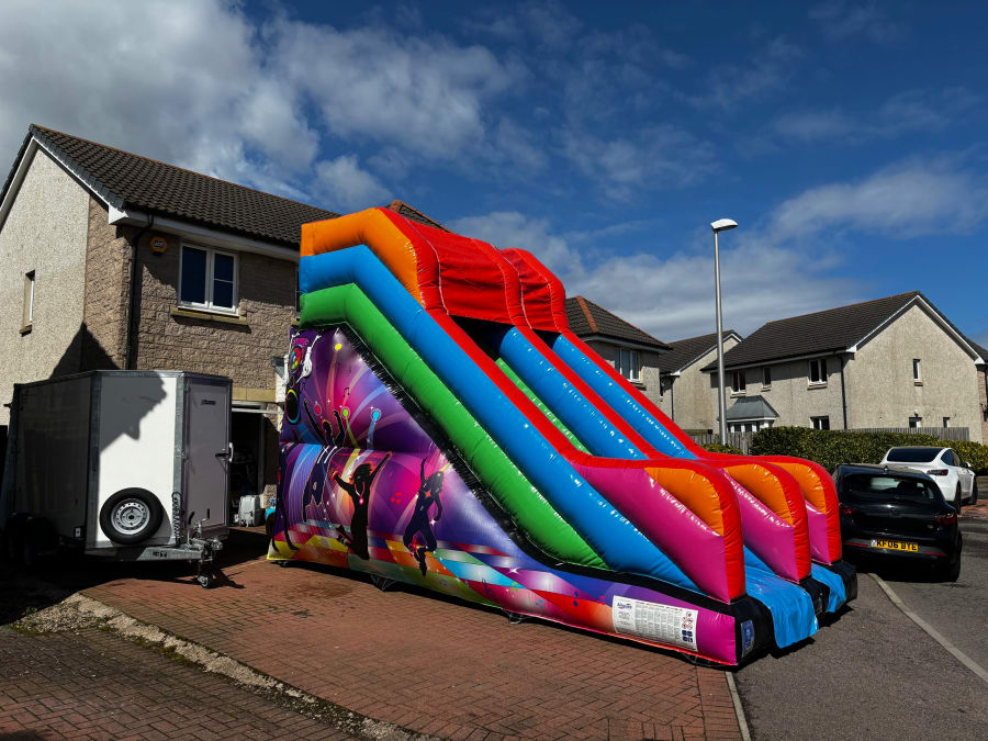 Get ready to slide into the groove with our 10ft Platform Multicoloured Disco Slide! 🌈 Perfect for parties, gatherings, and events of all kinds in Aberdeen and Aberdeenshire, this superfast and fun slide is the ultimate entertainment addition.